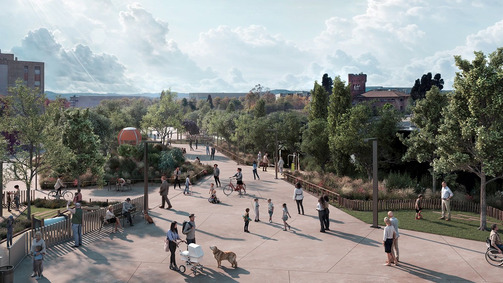 El projecte transforma el buit generat pel soterrament dels FGC en un nou parc lineal que relliga els barris de Can Feu i Gràcia i connecta el Bosc de Can Feu amb el centre de Sabadell. L’actuació converteix l’antiga fractura urbana en un corredor verd i accessible que integra natura, mobilitat sostenible i zones d’estada.